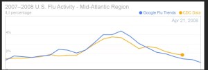 Google search data is beginning to be used to learn more about the flu. In fact, it’s beginning to look like Google Flu Trends (GFT), which keeps track of searches that inquire about influenza symptoms, may be faster and more effective than the Centers for Disease Control (CDC) surveillance network when it comes to predicting where the flu will become most prevalent. To learn more read this Google Flu Trends FAQ.