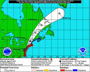 For more than an hour after the earthquake, making mobile phone calls was difficult, though I found I was able to text easily. Now, during hurricane Irene (I am sitting by a window watching the rain fall in sheets), I worry about maintaining the battery charge of each gadget as long as possible, since the power is sure to go out at some point. Of greater concern is that, with millions of people losing power, it may take some time to get the power restored. Preservation becomes even more of a concern.